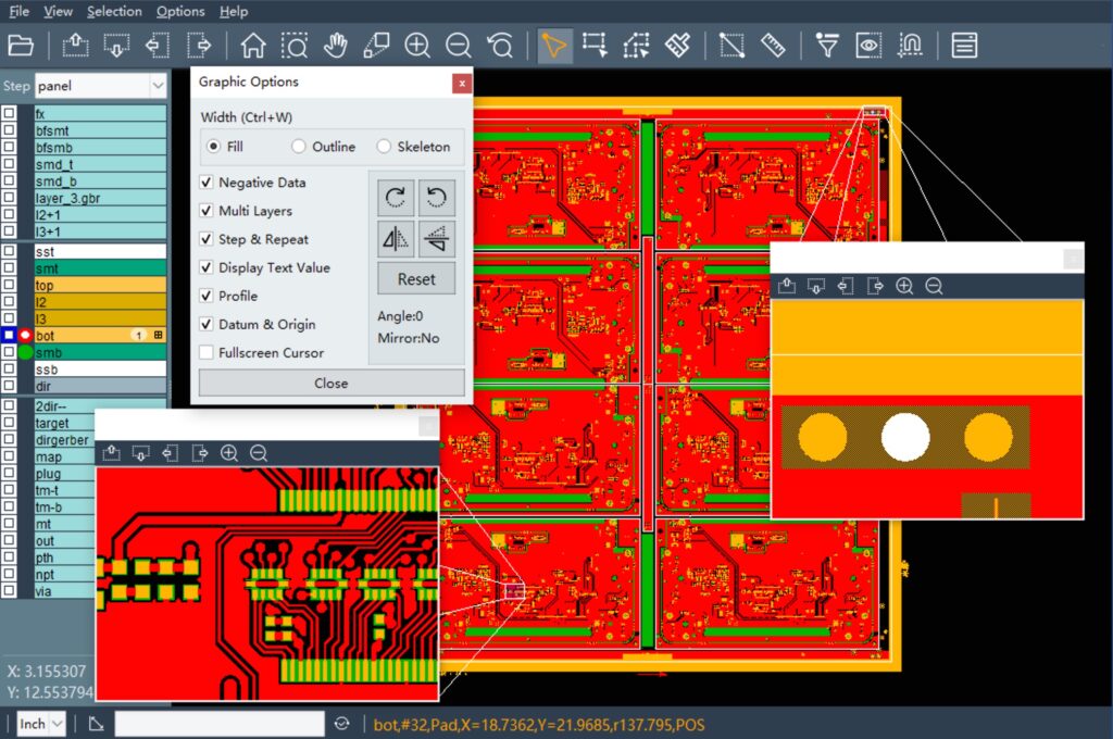 OpenCAM是由無錫東領(lǐng)智能科技股份有限公司開發(fā)的一款輕量級PCB CAM圖形查看器?;贑++開發(fā),具有超高的圖形顯示效率,完全支持ODB++8.1格式。